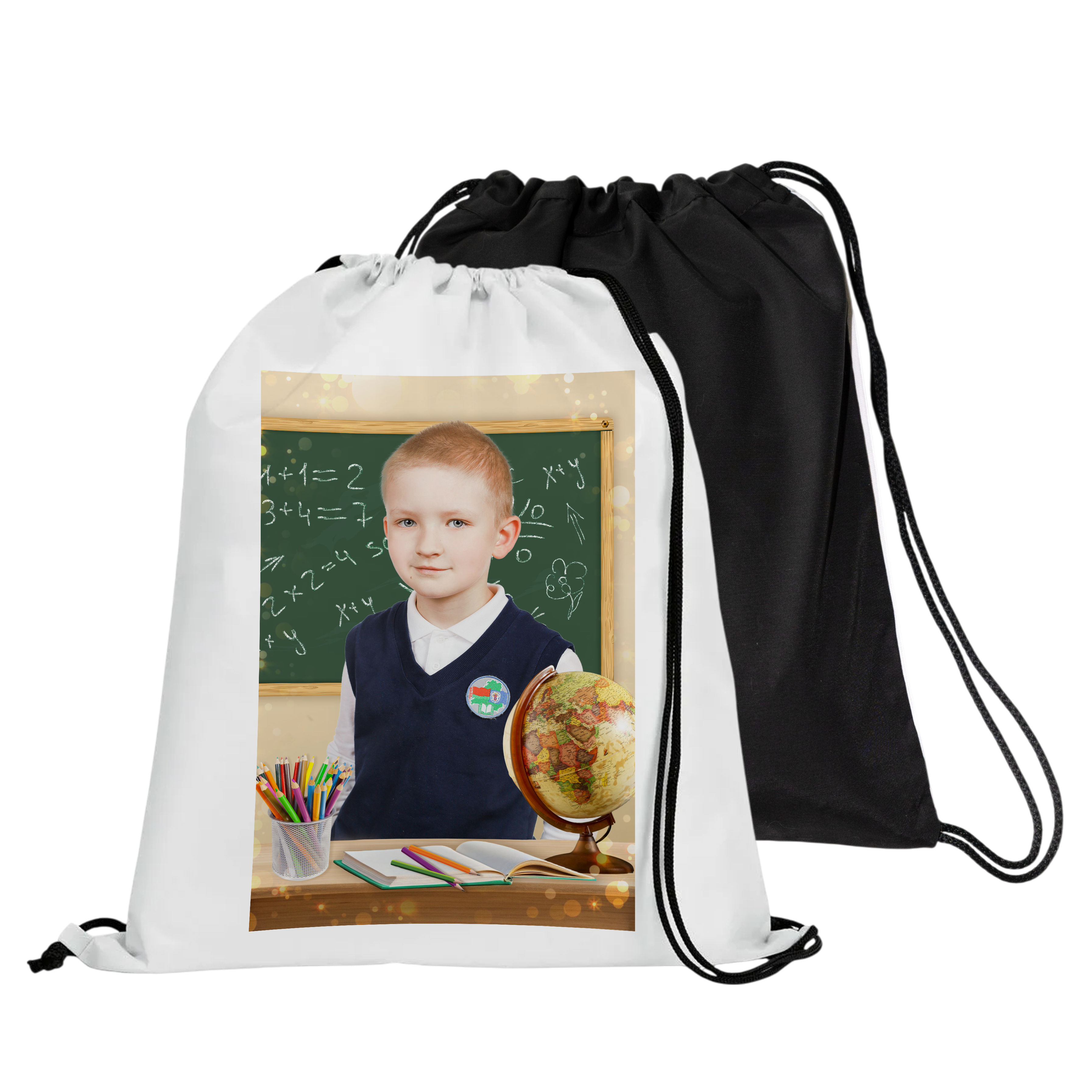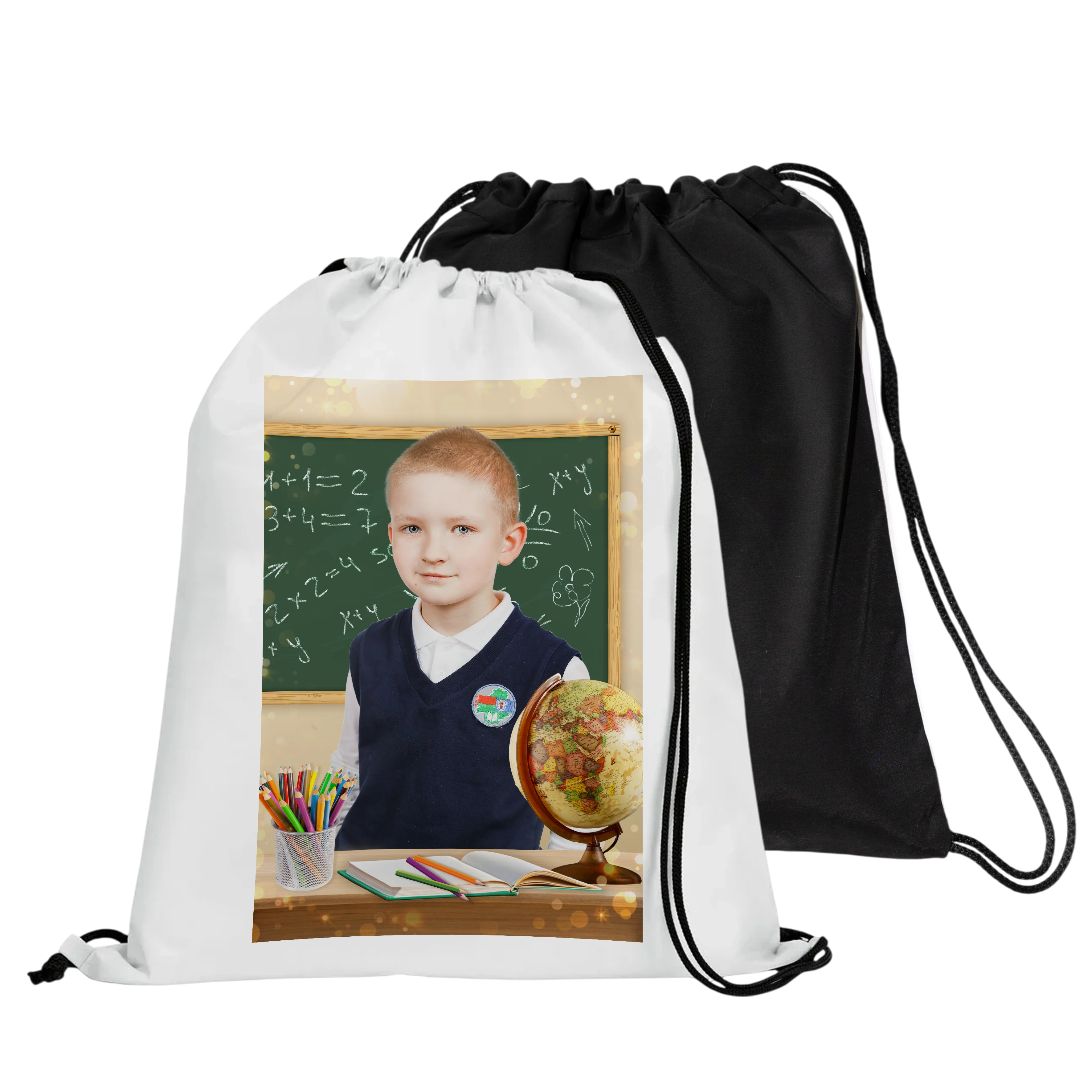 Размер печати А4. Размер рюкзака 34х44 см. Цвет рюкзака черно-белый.